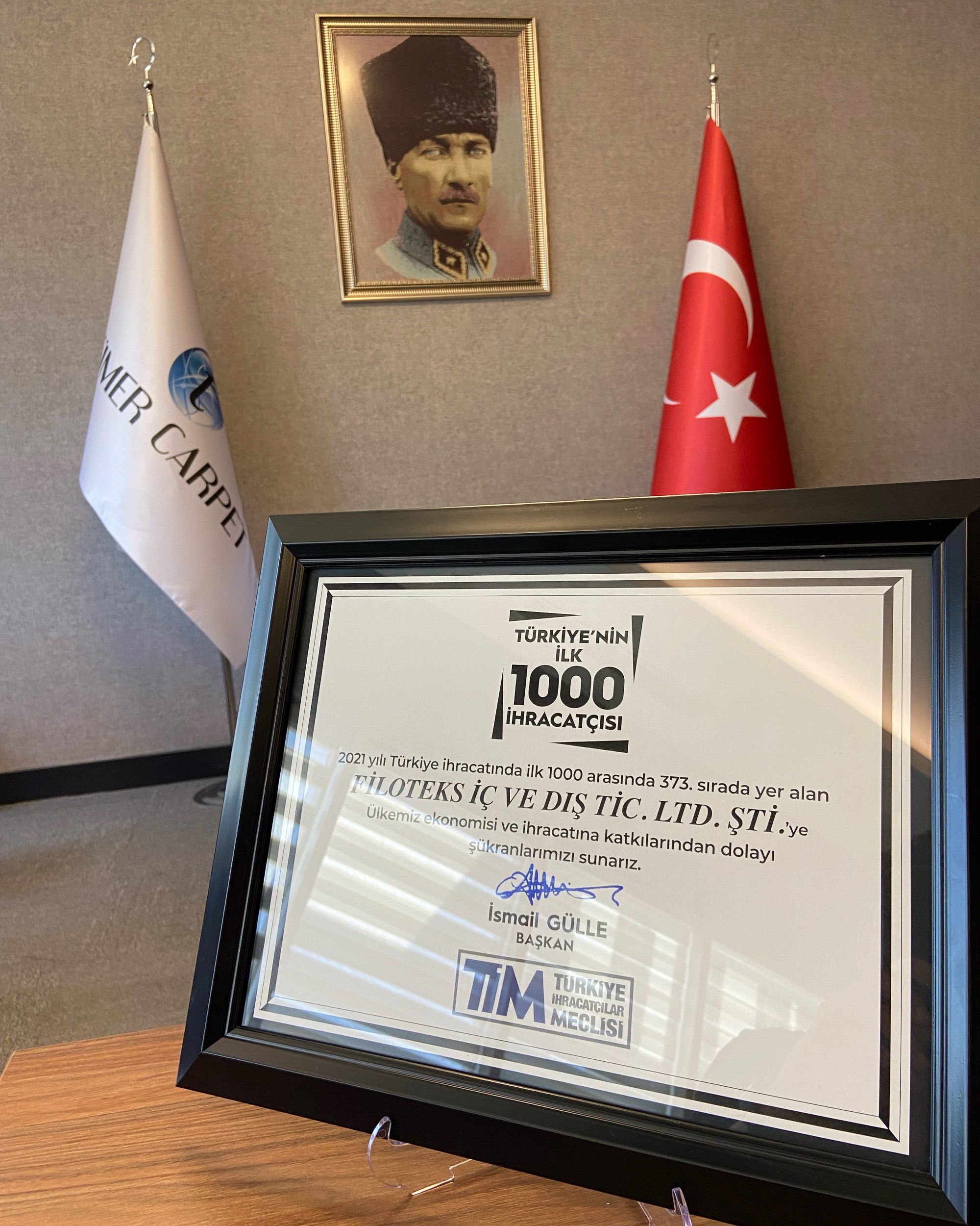 Dış Ticaret firmamız olan Filoteks İç ve Dış Tic. Ltd. Şti. 2021 yılında Türkiye İhracatında İlk 1000 arasında 373. sırada yer almaktadır. Bu başarıda emeği geçen çalışanlarımıza ve yöneticilerimize teşekkür ederiz.